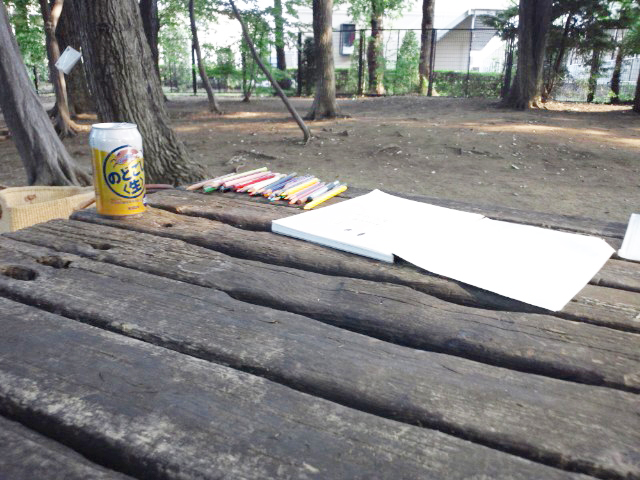 今日(日付が変わったのでもう昨日ですが)、近くの公園で スケッチをしていました。 川沿いにあり、それほど近くに家などがないこともあり、 公園の木陰は思ったより暑くはありません。 ただし、蚊はものすごいです。 むしろ冷房が効きすぎている建物内よりずっといい。 最近、節電はどうしたのでしょうか。 寒いほど涼しくなくても、昼間の電車内に明かりがなくても 全然いいんだけどなぁ。 閑話休題。 そう、この公園は例のねこたちの公園。 お世話をしている方達が日に何人かいらっしゃいます。 写真に写っている発泡酒は、ねこ仲間の方が 「たまたま2本買ったから一緒に呑みましょ〜。」 とくださったものです。ごちそうさまでした! (イラストレーターは毎日のんびり外で呑んでいるわけではありません…) 前日から外でスケッチするぞ〜と決めてはいたのですが、 やっぱりいいものです。これからもたまにしよう。 そろそろ引き上げようという頃に公園に帰って来た子が。 私が描いている手元を「じぃ〜」っと見ているので貸してあげました。 本日のねこ画伯。 そして飽きちゃいました。 それでは! BGM: |