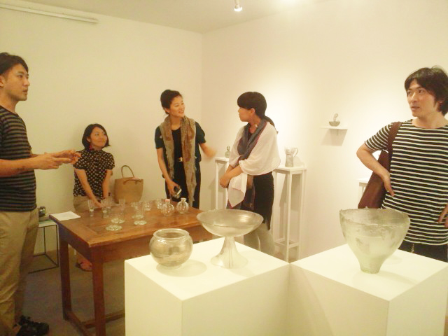 昨日は福岡の予備校時代からの友人で大学、専攻も同じ 広田くんの個展「広田 直展」@硝子企画舎/ プリズムプラスへ 行って参りました。 吹き、キャスト、焼き付けなどの作品達に 手間を惜しまない細やかな仕事が施されていました。 作業工程の多さ、熱さ、冷たさ(ガラスは仕上げの工程はとても冷える作業があるのです) 実感出来るだけに、特別な思いで見入ってしまいました。 いい刺激をたくさん、ありがとうございました! 硝子企画舎の主催者、井上さんの作品も常設の棚に少しあり、 繊細な手仕事と洗練されつつどこか親しみが感じ、とても素敵でした! 硝子企画舎さんは窯のレンタルもしていて 私の今後の予定にどのように組み込もう?と、 そんな事も考えてしまいました。 福岡の同じ予備校だったみんなも来ていてその後食事へ。 もちろん全編博多弁! 展示の広田くんはじめ、みんな後輩なのですが、 私よりもしっかりと、それぞれの道を行くみんなとの話は とても楽しく、とりとめのない会話でも どこか背筋が伸びる思いでした。 みんなにアドバイスされるなど、相変わらずダメな先輩っぷりを発揮! へへへ。でもうれしいな。 ところで、昨日は浴衣を着ていきました。 昭和の藍染めの着物に博多の半幅帯。 文庫結びにあえて帯締めを。 会場へ向かう電車の中、和裁の先生の娘さんを持つ方から話しかけられ、 「娘の参考に」と、写真を撮ってくださいました。 とてもファンキーなおばさまで、お孫さんを2人連れて。 写真撮影&浴衣のお話、お孫さんと遊んでいて1駅乗り過ごしました。。 ちなみに全部、古着物で浴衣は¥2,000、帯は¥500だったと思います。 ちゃんとした昔の浴衣はとても涼しく、汗も吸ってくれます。 今、洗濯機でジャブジャブお洗濯中。だって、日本人の普段着ですから。 その他、夏着物も持っていています。 実はお着物は15着ほど持っていているのですが、 さすがに20代前半で購入したかわいらしい銘仙などはさすがに…。 あまり渋いのもちょっと貫禄が出ちゃうし、若作りも…というお年頃です。 (髪飾りの花が充分若作…ゴホゴホッ) そうそう、昨日の食事でも話の半分が病気や検診、親の話などで、 年を重ねてるなぁ〜となんだか可笑しくなってしまいました。 さてさて、今日もいい天気。作業再開です! BGM:Toots and the Maytals /Monkey Man PR