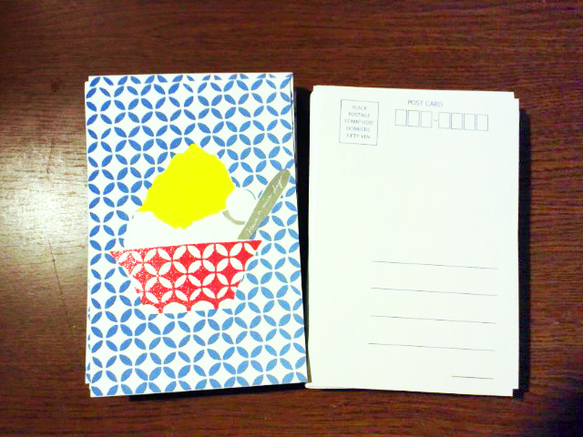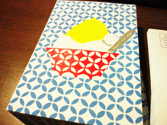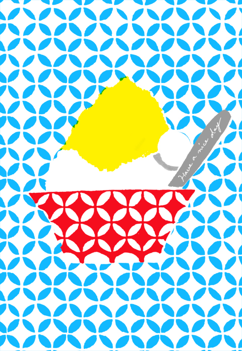 暑いですね〜!西日本では雨が続いているようですね。 どうか被害が出ませんよう。 タイトルの暑中お見舞い申し上げます。 キャンディーズの歌にありますね。 閑話休題。 関係者各位、お世話になっている方々への 暑中お見舞いを作っておりました。 こちら。つやっとする加工部分を作る予定です。 するとどうでしょう。 あと何柄かアイディアが浮かび、作成してしまいました。 レモン味。 浴衣でいただきたい冷酒。 が、各店舗様はもう秋のものにアンテナを向け仕入れ始める季節。 時すでに遅し! 「うちに置いてやってもいいよ!」という 心温かい店舗の方いらっしゃいますでしょうか。 是非、どしどしご一報下さい!! 疲れなのか夏風邪なのか、少し体調を崩している私です。 皆様もお気をつけて。 では! BGM:
