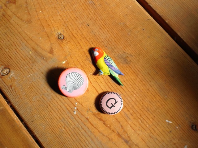 こちら快晴です。 昨日は「LOTUS BLUE」の永井さんが東京にいらしてるということで 「patterie」のrieちゃんと3人でよく行くお店に集合! そしたらちょうどそのお店の新年会で、 「楽しいしいっかぁ!」と、そのまま常連さんたちと 楽しく過ごしました。 さて、タイトルの小さいものとはこちら。 ブローチやバッヂたちです。 どちらも陶製で偶然にも2つとも鳥関連。 こちらはアドものやオリンピック関連のピンバッヂ。 ボタンダウンの襟のボタンのところにつけたり。 アドものといえばこちらはフランスのアドものの小さなヨーヨー。 壊れてしまったので片面ずつバッヂに。 こちらは缶バッチタイプ。また鳥だ! 大きめタイプ。サヴィニャックさんの絵と刺繍のもの。 こちらは自分で作ったもの。木製や毛糸のもの。 よく付けるものをピックアップして並べてみました。 久々にガラスで作りたくなったマメドリでした。 よい休日を〜。 BGM:JASON KNIGHT / OUR LOVE IS GETTING STRONGER