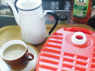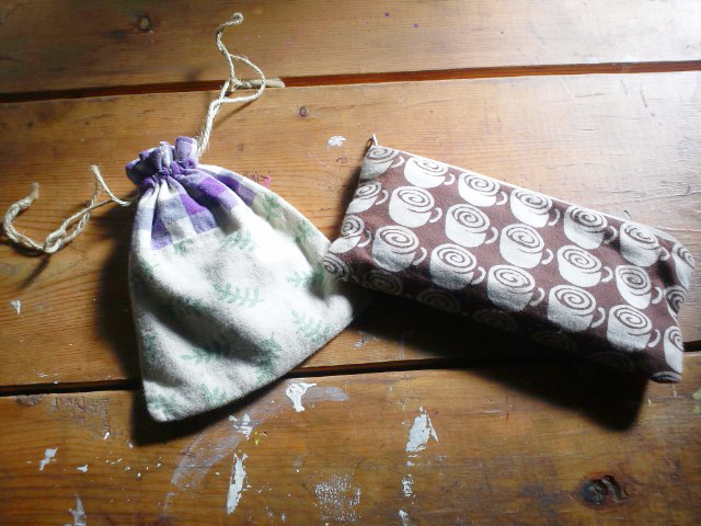 寒い日が続きますね。 アトリエで制作や仕事をする時は、なるべくエアコンを使わずに 過ごす事を心がけています。 なんとなく頭がぼーっとしてきちゃうのと、 やはり長時間過ごすので、夏・冬は電気代がすごい事になっちゃうのです。 お恥ずかしいほどの昭和な台所で朝の準備。 そう、湯たんぽです。 これを足下に置くだけで全然違います! このオレンジもかわいいなぁと思います。 そしてカフェオレを淹れて。 台所つながりで先日に引き続き好きなものを。 そう、手ぬぐいです。20枚はあるでしょうか。 私は大分小柄なので、タオル類はどうも手に余ってしまいます。 その点、手ぬぐいは楽に絞れるしすぐ乾く。 食器ふき、布巾、さらし代わり、ランチョンマットなどなど…用途は色々。 また、毎日取り替えるのは大変な枕カバー代わりにも使っています。 使いやすいサイズにカットしても切り口がほつれない。 そしてテキスタイルとしてもかわいい!! こんな風に余った部分でちょっと小物を作ったり。 以前、お世話になっていたデザイン会社さんが手ぬぐいショップを 経営しており、入社のきっかけも手ぬぐいのデザインでした。 会社にお世話になっている時、いくつか柄をデザインさせていただいたり、 小物をデザインさせていただいたりしました。 (鎌倉の若宮大路にそのお店はあります。ぜひ!) 以前から好きだったのですが、本格的に好きになったのは お仕事で携わってから。 そこで「江戸注染」に目覚める事となりました。 文字通り「注ぎ染め」で、裏まで柄が通っているため、 裏はちょうど反転した絵柄になります。 それを利用して「表はかれい、うらはひらめ(お魚)」だったりします。 柄にもいろいろ意味があって、 ひょうたんが6つで『無病息災』 ウサギの柄で『跳ねる』(飛躍する) たぬきの柄で『他を抜く』(抜きん出る) など、江戸っ子の洒落っ気が楽しいのです。 では、実家での嬉しいエピソードと残念なエピソードを1つずつ。 嬉しいエピソードは 母がイラストレーターファイルで私を見つけ、購入してくれていた事。 残念なエピソードは デザイン会社当時、初めてデザインさせていただいた手ぬぐいを 実家に帰ってプレゼントしたところ、 翌朝、「ごめん…」と妹が。 使用したその日にキッチン漂白剤につけてしまい ただの白いさらしになってしまった事! (母や妹はすごくきれい好きなのです。) えー!!! またしてもとりとめのない日記でした。 BGM:ハイドン:交響曲第88番「V字」/ウィーン・フィルハーモニー管弦楽団(バーンスタイン)