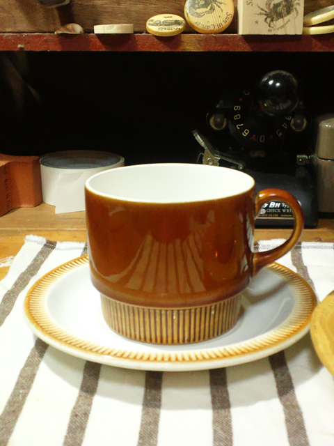 私は生活雑貨が好きです。特に古めのもの。 しかし、コレクターではありません。 そして詳しくもありません。 ただ、自分が素敵だと思うものを使って暮らしたいだけなのです。 という訳で前置きはさておき、 なぜかカップは「ブラウン(ベージュ)or 水色」を 選んでしまうというお話。 わたくし、珈琲だってたっぷり飲みたいものでして やはりモーニングカップやマグを選んでしまいます。 右は毎度の「OLD NEW THING」さんで購入したもの。 メーカーは不明。自分にしては珍しく少し曲線的ですが、 この何ともいえない色味と、カップの大きさが気に入りました。 左はイギリスの老舗陶器メーカー「Poole Pottery」のモーニングカップ。 ファンも沢山いるメーカーなのでご存知の方も多いかと思います。 もう色も形もドストライク! もちろん、必要分はもうあるのに欲しくなってしまうことも。 そこは、「資料だから。」「将来何かに使うかも。」「お客さん用に。」 などと言い訳を考えつつ、財力、収納のキャパシティー、 そして自分の中の「ルール」との格闘です。 大抵の場合、否応無しに財力によって購入は断念しますが…。 けど、このルールの中で探すから楽しいんですよね。 BGM : SALT WATER TAFFY / FINDER KEEPER