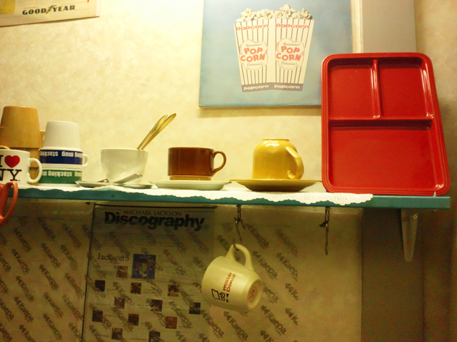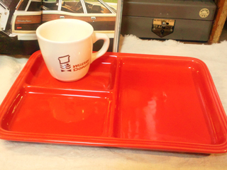先日はC&Sについて書きましたが、 今日はマグカップとプレートです。 こちらのアドもの ミスタードーナツ35周年記念のもの。 mister Donutは1955年創業だそうですので1990年のものですね。 当時もらったのではなく、最近リサイクルショップで購入しました。 どんだけアツい珈琲入れる気やねん!ってくらい分厚いです。 昔(それも結構昔)のmister Donutは もっとオールドアメリカンな雰囲気で好きだったなぁ。 今はホントのホントのmister Donutはアメリカに8店舗しかないのだとか。 実は幼い頃、この片目だけのマークがちょっと怖かったのです。 そしてカップではありませんが、雰囲気がぴったりだったので こちらのプレートを。 真っ赤っ赤!!とにかく赤!! こちらは裏に何も書いてなく、いつのどこのものか不明。 どちらとも仙川の「ガレージセール」にて購入。 フリマ並みのお値段です。 アメリカンですよね〜。 BGM:Michael Jackson / Black or White